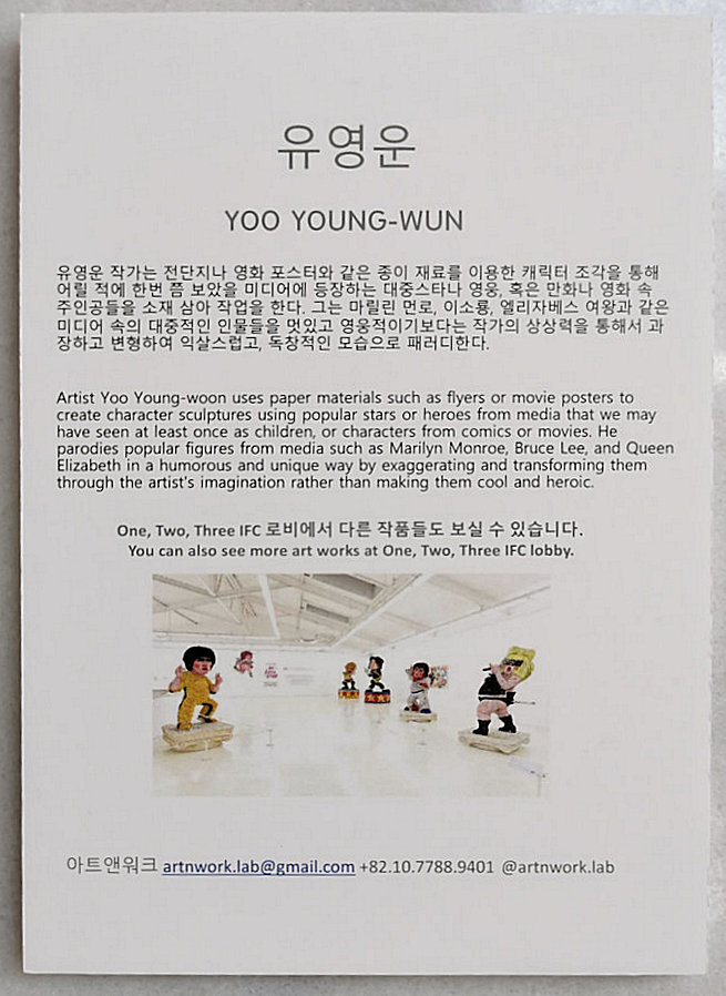 À côté d'un Starbucks, je suis tombé sur une petite expo de YOO Young-wun, Les indestructibles (les idoles des temps modernes) à l'IFC, Yeouido, Séoul, à proximité de l'Assemblée nationale coréenne.
