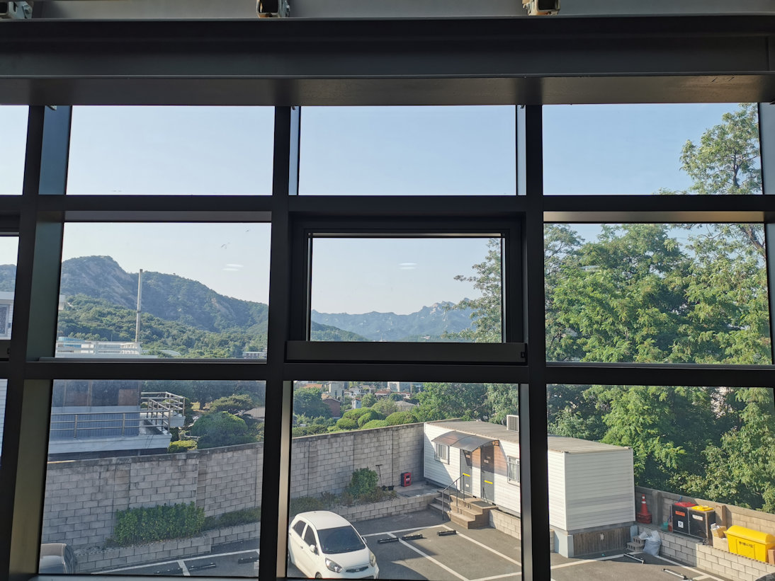 Vue depuis le premier étage sur Inwangsan Mountain Park.