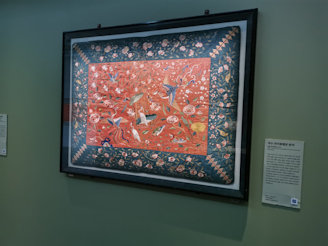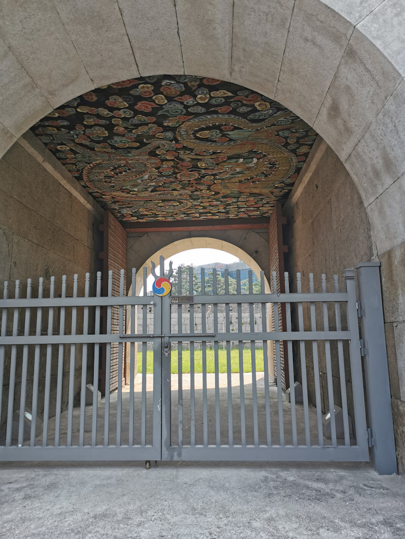 Musée du mur (Hanhyangdoseong) de 18,6 km entourant Hanyang (Séoul actuel) à l'époque joseon, , à côté de la porte Heunginjimun et son plafond décoré.