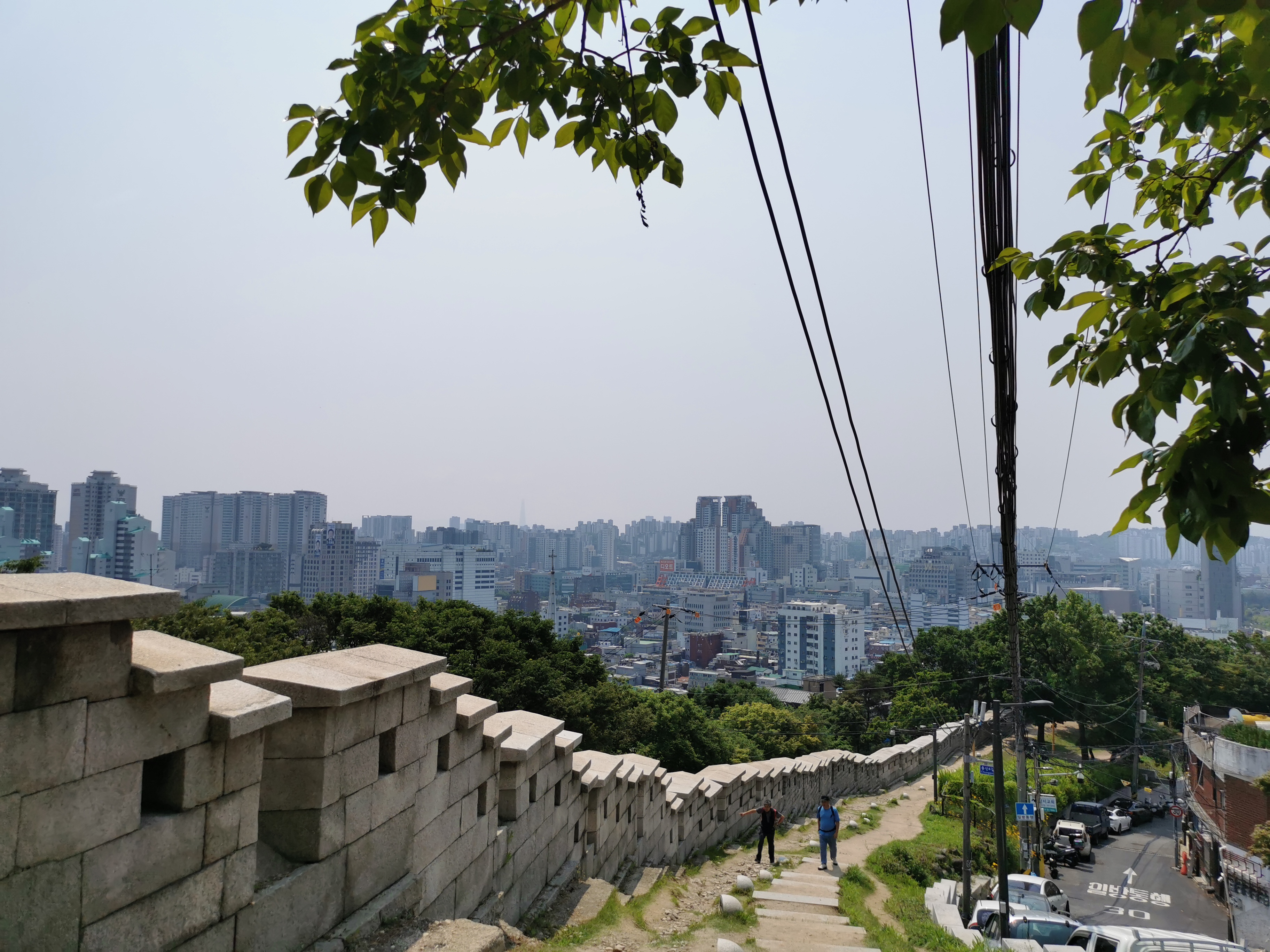 • Le mur (au dessus du Musée) en grimpant le mont Naksan.