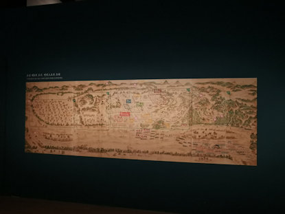 • Carte de Pyongyang sur paravent huit panneaux, sous la dynastie Joseon • et sa notice.