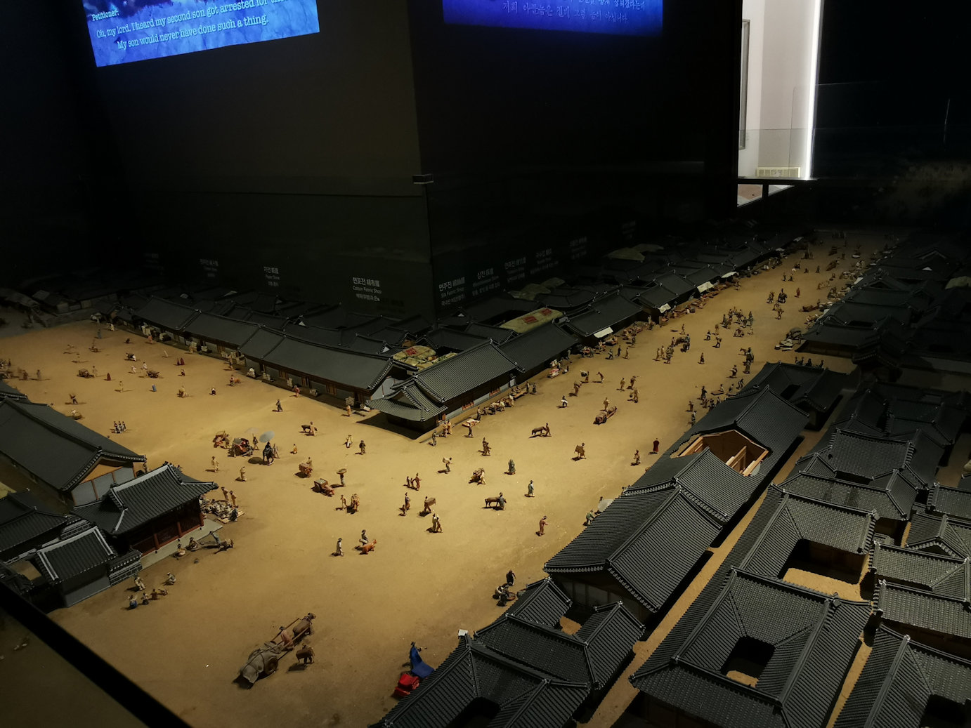 Gauche et droite : rues de la ville ancienne de Hanyang (Séoul) au XVIIIe siècle.
