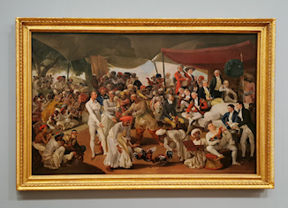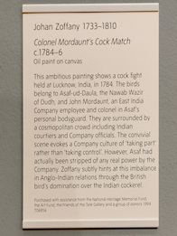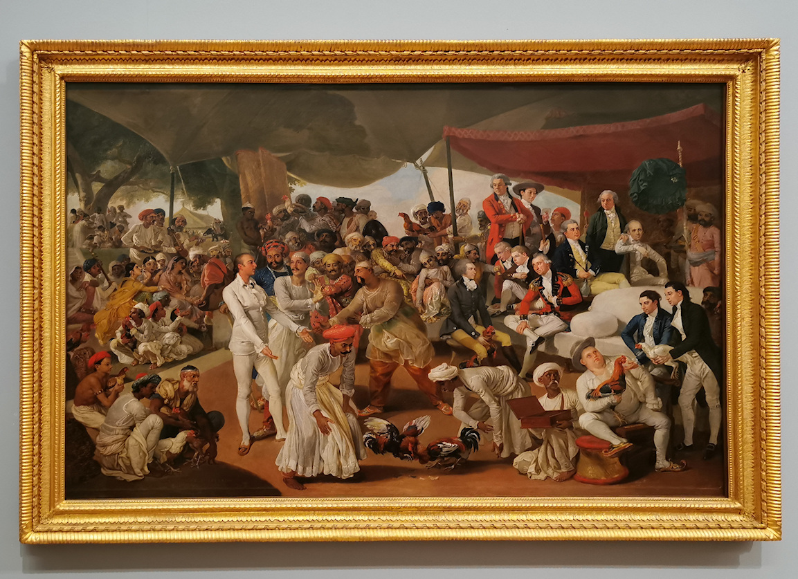 • Colonel Mordaunt's Cock Match (1784-1786), par Johan Zoffany (1733-1810).