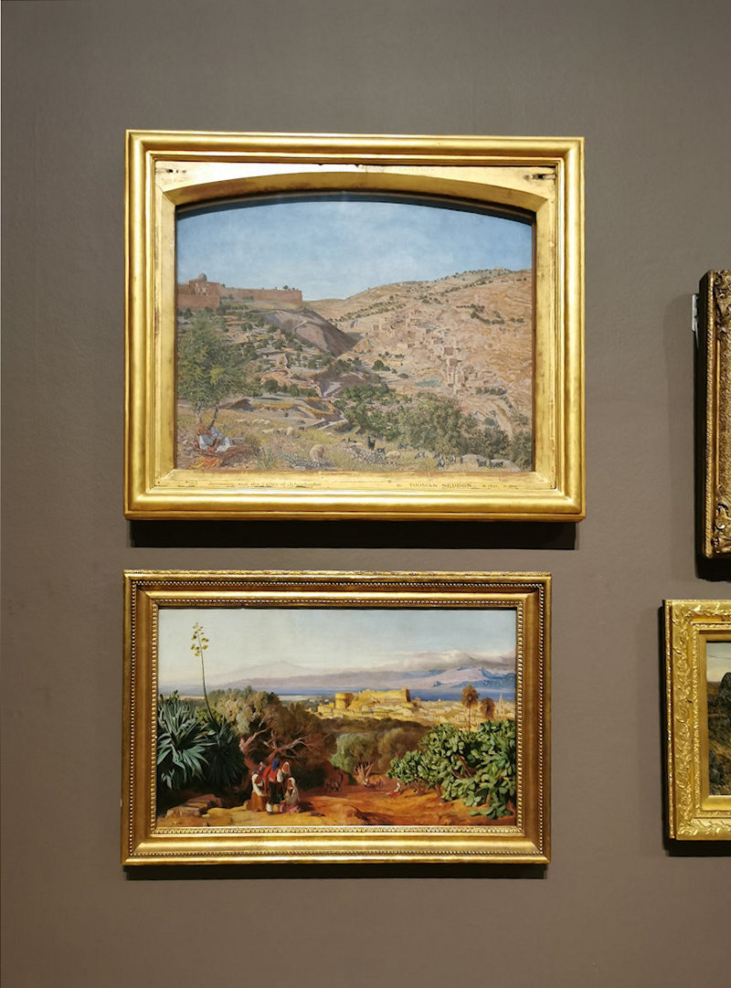 • Jerusalem and the Valley of Jehoshaphat from the Hill of Evil Counsel (1854--1855) par Thomas Seddon (1821-1856) • View of Reggio and the Strait of Messina (1852) par Edward Lear (1812-1888).