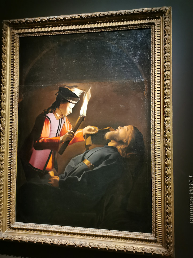 Georges de la Tour (1593-1652) est un de mes peintres préférés de la période et j'avais pourtant négligé la rétrospective précédente au Grand Palais en 1997. Cette fois, le Musée Jaquemart-André n'a pas réussi à avoir toutes les toiles, qui ne sont pourtant pas nombreuses. L'atelier du peintre avait été détruit par un incendie à l'époque des guerres en Lorraine. L'expo a essuyé 50 % de refus de prêt des musées. Seulement vingt-deux peintures originales sur quarante connues, plus dix de l'atelier du peintre, étaient présentes.