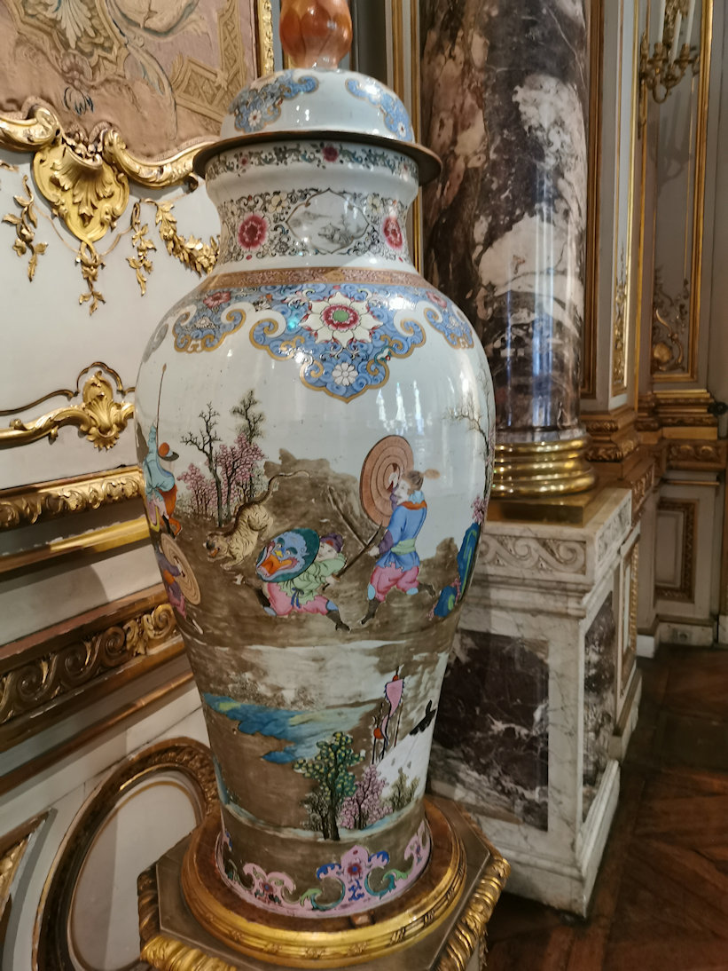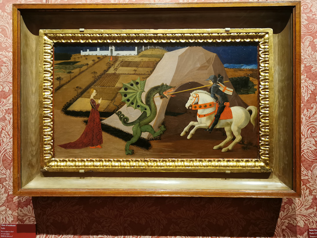 Ci-dessous Le grand salon • Canaletto : La Place saint-Marc et Le Grand Canal du palais Dolphin-Manin au Rialto • Vase chinois (Qianglong, XVIIIe) à décor de chasse impériale au tigre • Paolo Ucello : Saint Georges et la princesse.