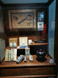 À gauche : Bronzes (boîtes à encens, brûleur, bol, pot)