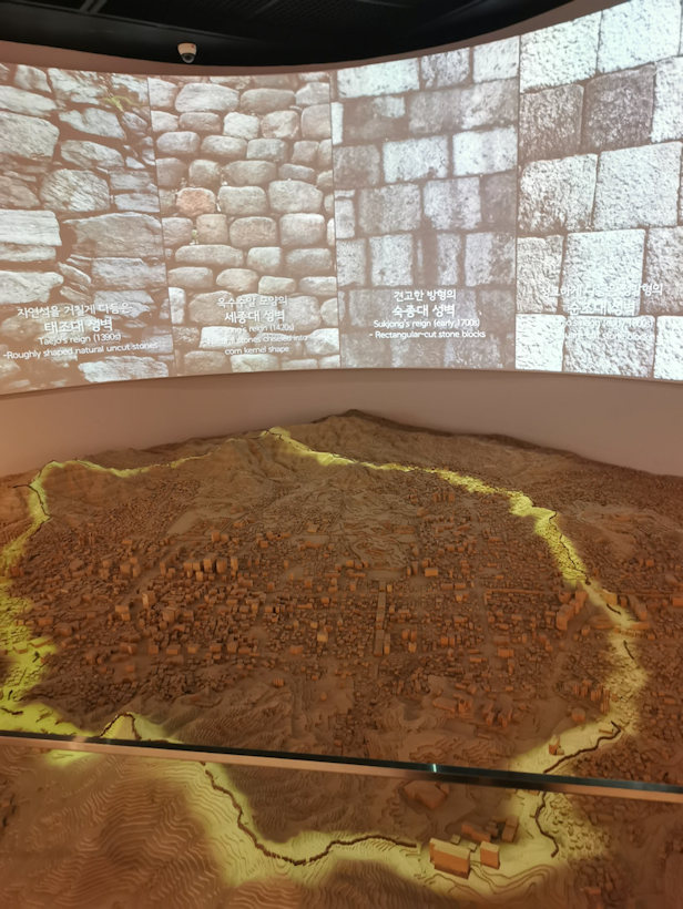 • Maquette de Hanyang (Séoul) avec son enceinte (et les différents types de mur selon les époques : 1390, 1420, 1700, 1800).