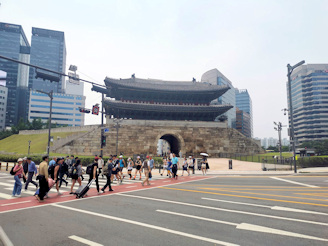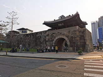 La porte Heunginjimun et la porte Sungnyemun (Namdaemun) et leur morceau de mur