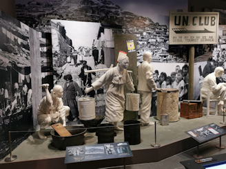 La facade du National Museum of Korean Contemporary History, sa position à Séoul, et la vue du palais Gyeongbokgung depuis les étages du musée.