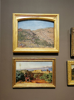 • Jerusalem and the Valley of Jehoshaphat from the Hill of Evil Counsel (1854--1855) par Thomas Seddon (1821-1856) • View of Reggio and the Strait of Messina (1852) par Edward Lear (1812-1888).