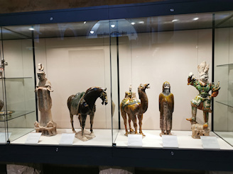 • Chine - Mobilier funéraire (gardien de tombe à droite), période Tang.