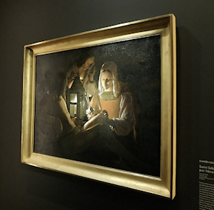 Georges de la Tour (1593-1652) est un de mes peintres préférés de la période et j'avais pourtant négligé la rétrospective précédente au Grand Palais en 1997. Cette fois, le Musée Jaquemart-André n'a pas réussi à avoir toutes les toiles, qui ne sont pourtant pas nombreuses. L'atelier du peintre avait été détruit par un incendie à l'époque des guerres en Lorraine. L'expo a essuyé 50 % de refus de prêt des musées. Seulement vingt-deux peintures originales sur quarante connues, plus dix de l'atelier du peintre, étaient présentes.