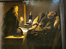 Ci-dessous Georges de la Tour : Le Nouveau-né • Georges de la Tour : Le Souffleur à la pipe • D'après Georges de la Tour : La Découverte du corps de saint Alexis • D'après Georges de la Tour : Saint François en extase.