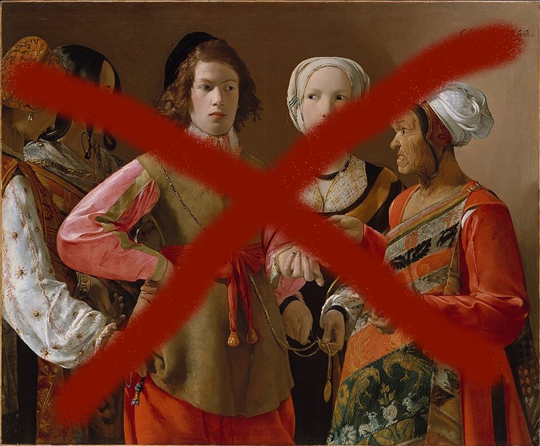 En particulier deux toiles parmi les plus célèbres, Le Tricheur à l'as de Carreau du Louvre et La Diseuse de bonne aventure du MET de New York, sont restées à leur place (photos Wikipédia).