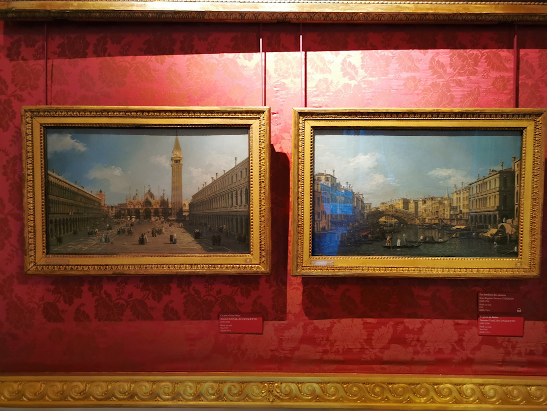 Ci-dessous Le grand salon • Canaletto : La Place saint-Marc et Le Grand Canal du palais Dolphin-Manin au Rialto • Vase chinois (Qianglong, XVIIIe) à décor de chasse impériale au tigre • Paolo Ucello : Saint Georges et la princesse.